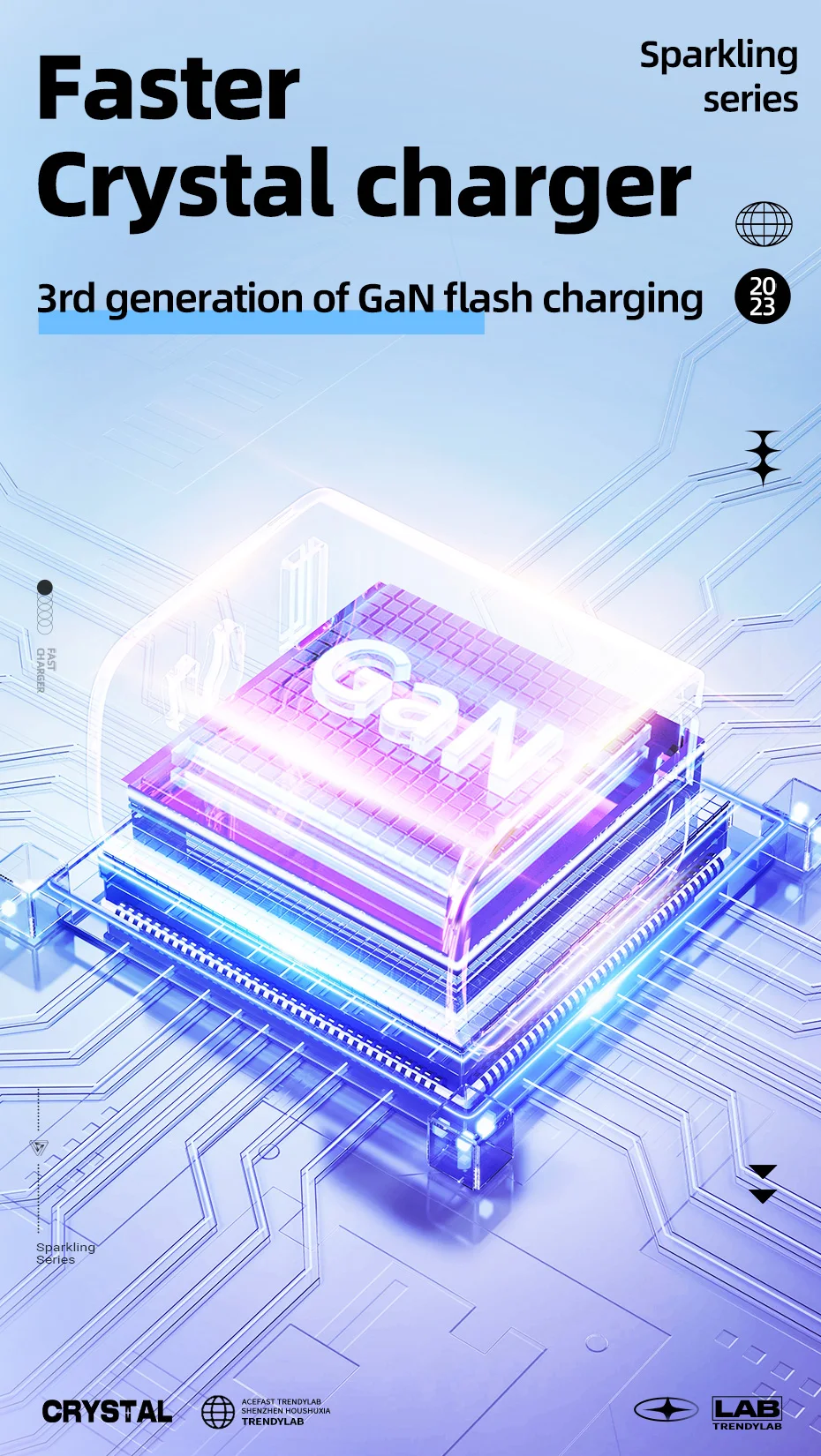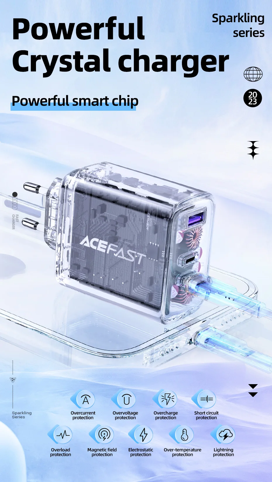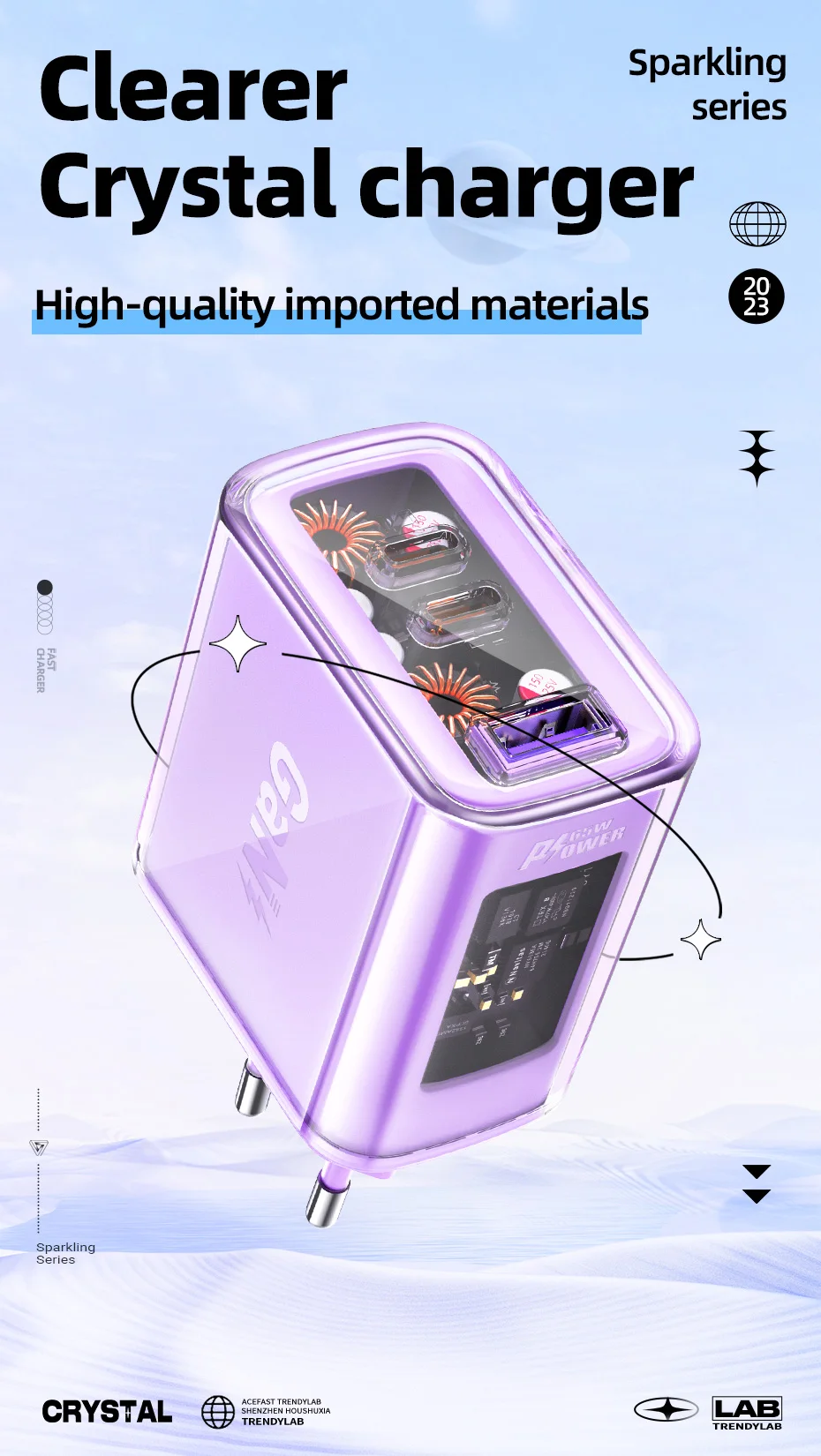 A45 Crystal Gan3 65W EU Fast Charging Charger for Iphone 15/14/13/12 USB C PD3.0 Quick Charge Adapter for Macbook Laptop